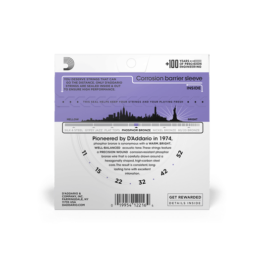 D'ADDARIO EJ11 Phosphor Bronze 12-53 Acoustic Guitar Strings, Light