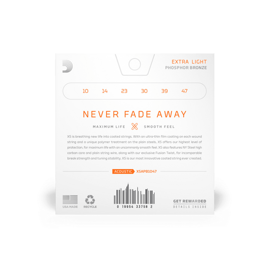 D'ADDARIO XS Phosphor Bronze 10-47 Acoustic Guitar Strings, Extra Light