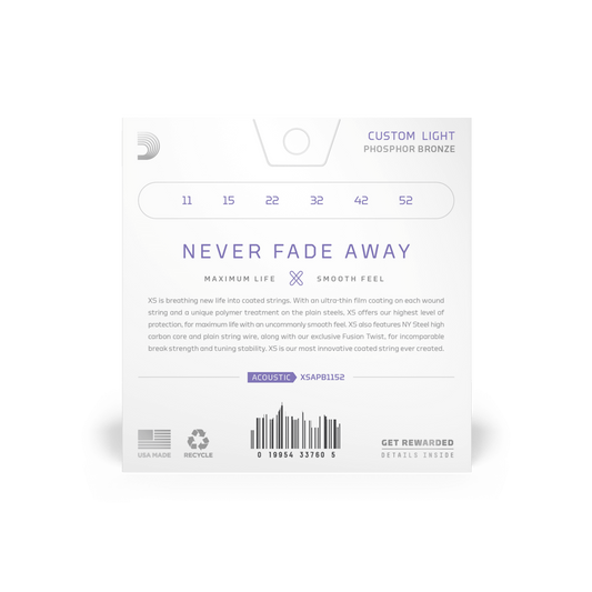 D'ADDARIO XS Phosphor Bronze 11-52 Acoustic Guitar Strings, Custom Light